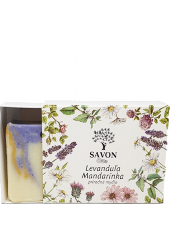 Prírodné levanduľové mydlo bez kozieho mlieka, bez sušeného kvetu levandule, vôňa trochu jemnejšia spojená s citrusovou vôňou mandarínky. Levanduľové mydlo je ideálne na poranenú, alebo slnkom spálenú pokožku. Levanduľa pomáha odbúravať stres a má antidepresívne účinky, poteší Vaše zmysly, zrelaxuje myseľ a pokožka bude ošetrená a krásne voňavá. Mydlo je vhodné na použitie pokožky celého tela aj tváre.